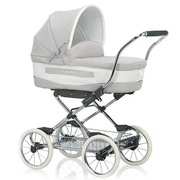 Inglesina VittoriaДетская коляска Inglesina Vittoria. Наиболее востребованная модель, пользующаяся большой популярностью среди российских родителей, предпочитающих классику и роскошь. Коляска отличается от многих других решений неподражаемым стилем, просторным спальным местом, простотой и практичностью в использовании. Вместительная люлька устанавливается на шасси. Материал люльки изготовлен из белоснежной хлопковой ткани, снимаемой по мере загрязнения и подвергающейся деликатной стирке. Четыре маневренных колеса обеспечивают плавный ход по любым дорогам. |
